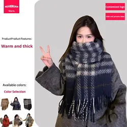 Kenshley-bufanda gruesa a cuadros para invierno, chales de Cachemira con patrón de cuadros de diseñador, urbana, a prueba de viento, elegante, borla, gran oferta
